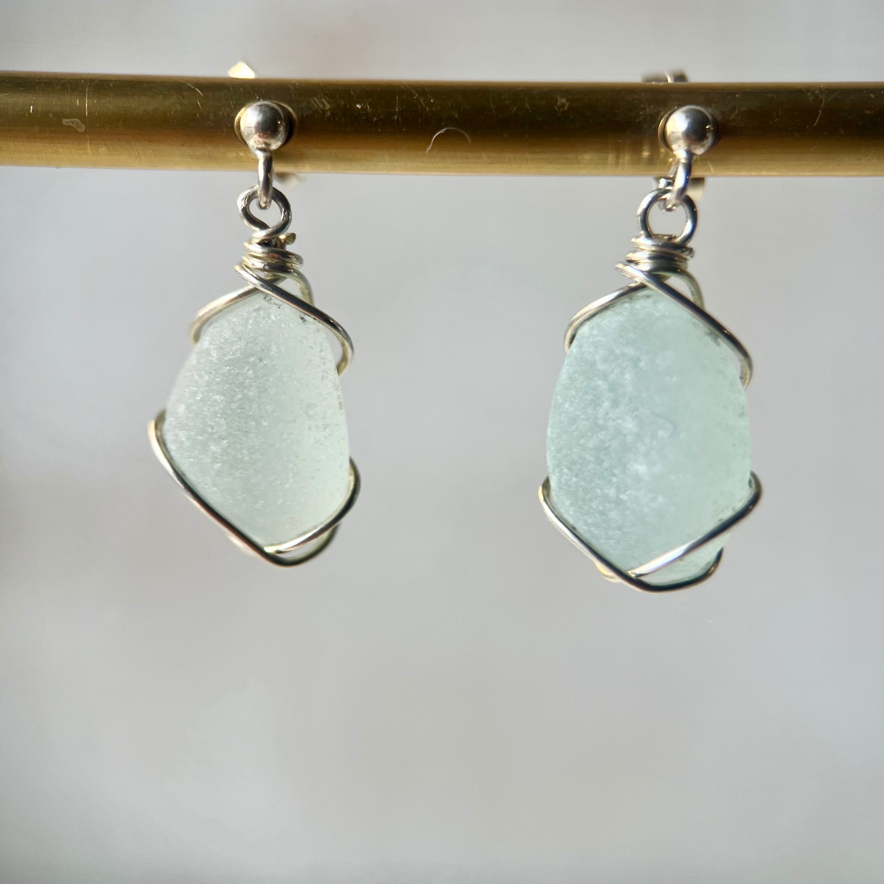《Silver925》小さな水色シーグラスが揺れるスタッズピアス