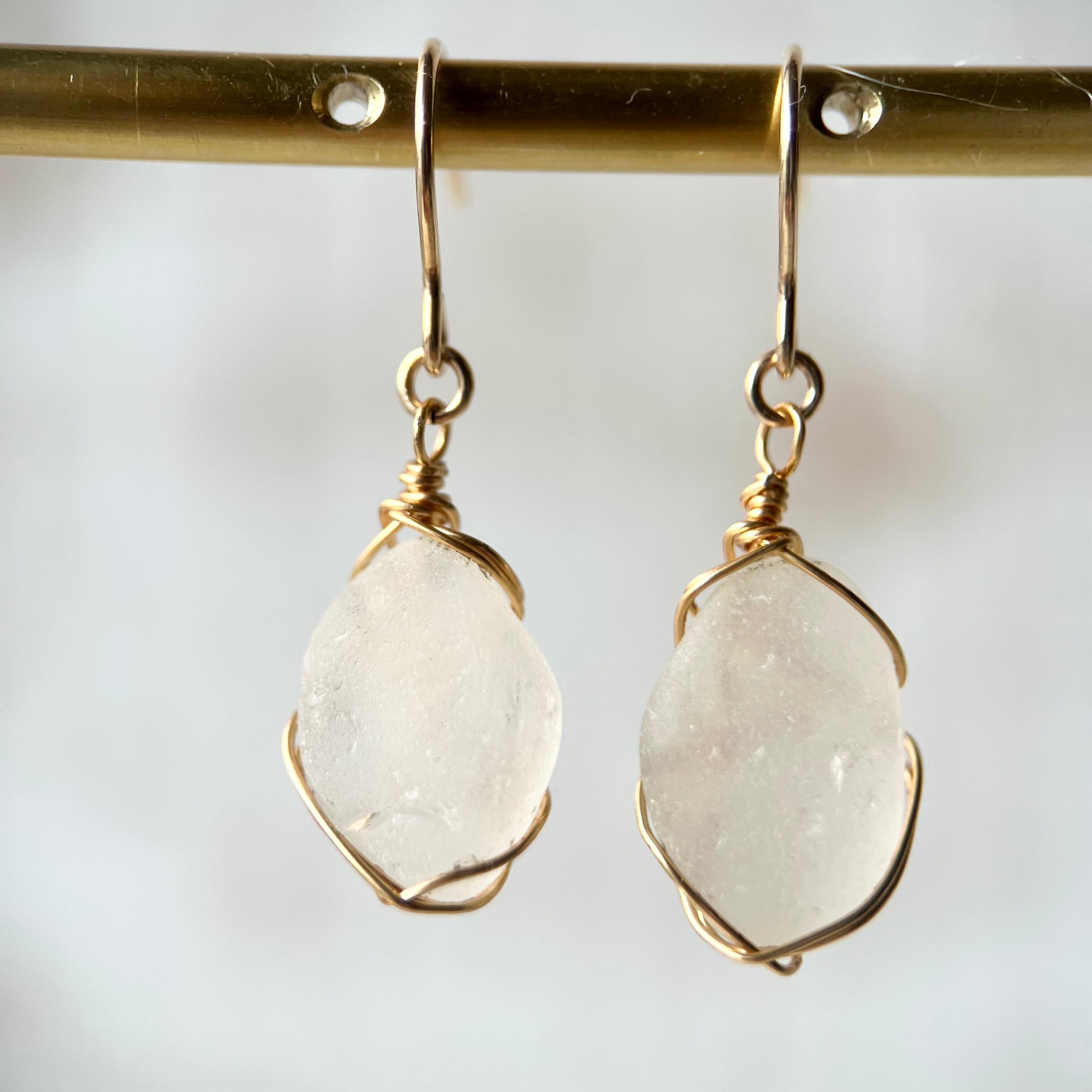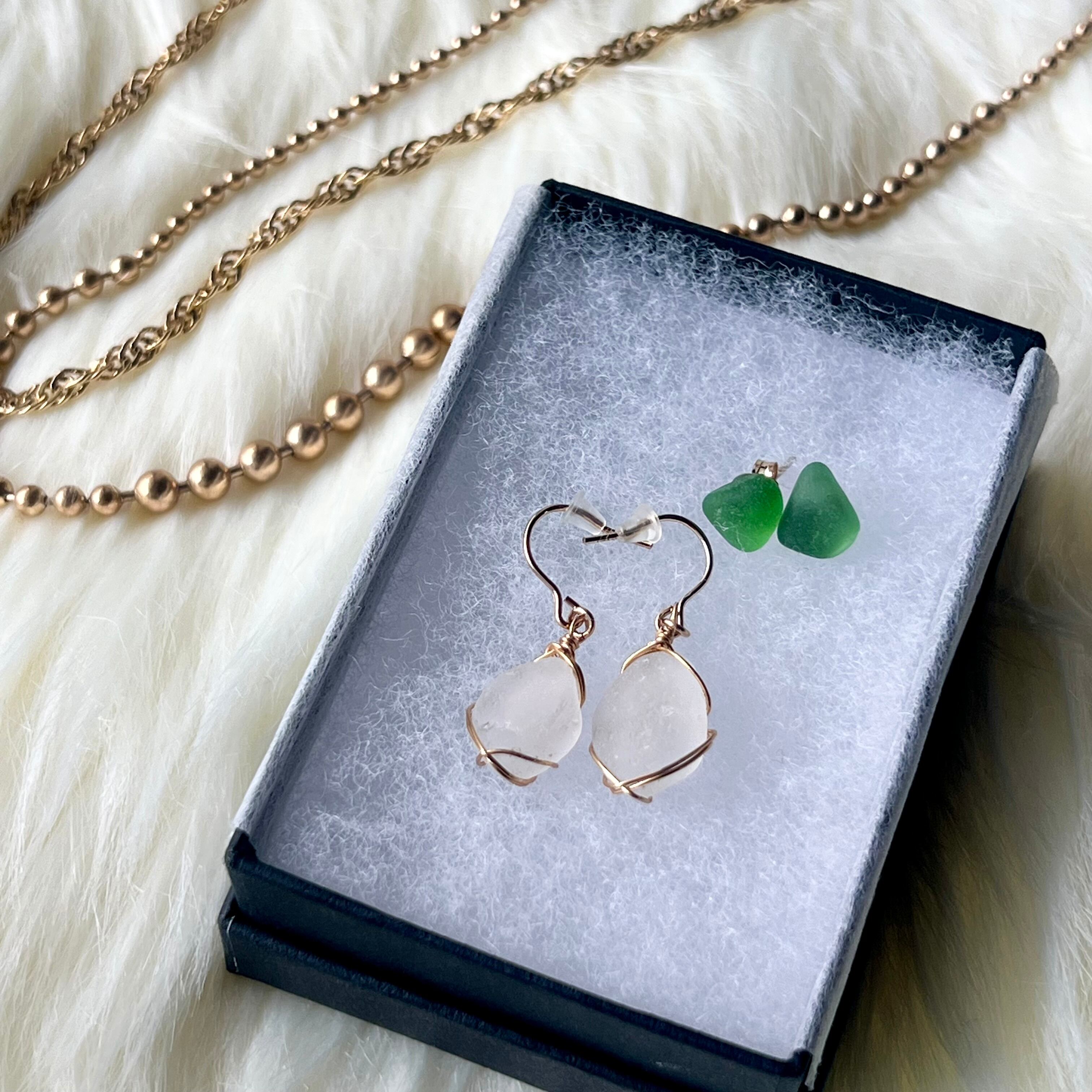 大切な人への贈り物 ご褒美ジュエリーBOX《14kgf》グリーンとホワイトシーグラスの大人シンプルピアスセット