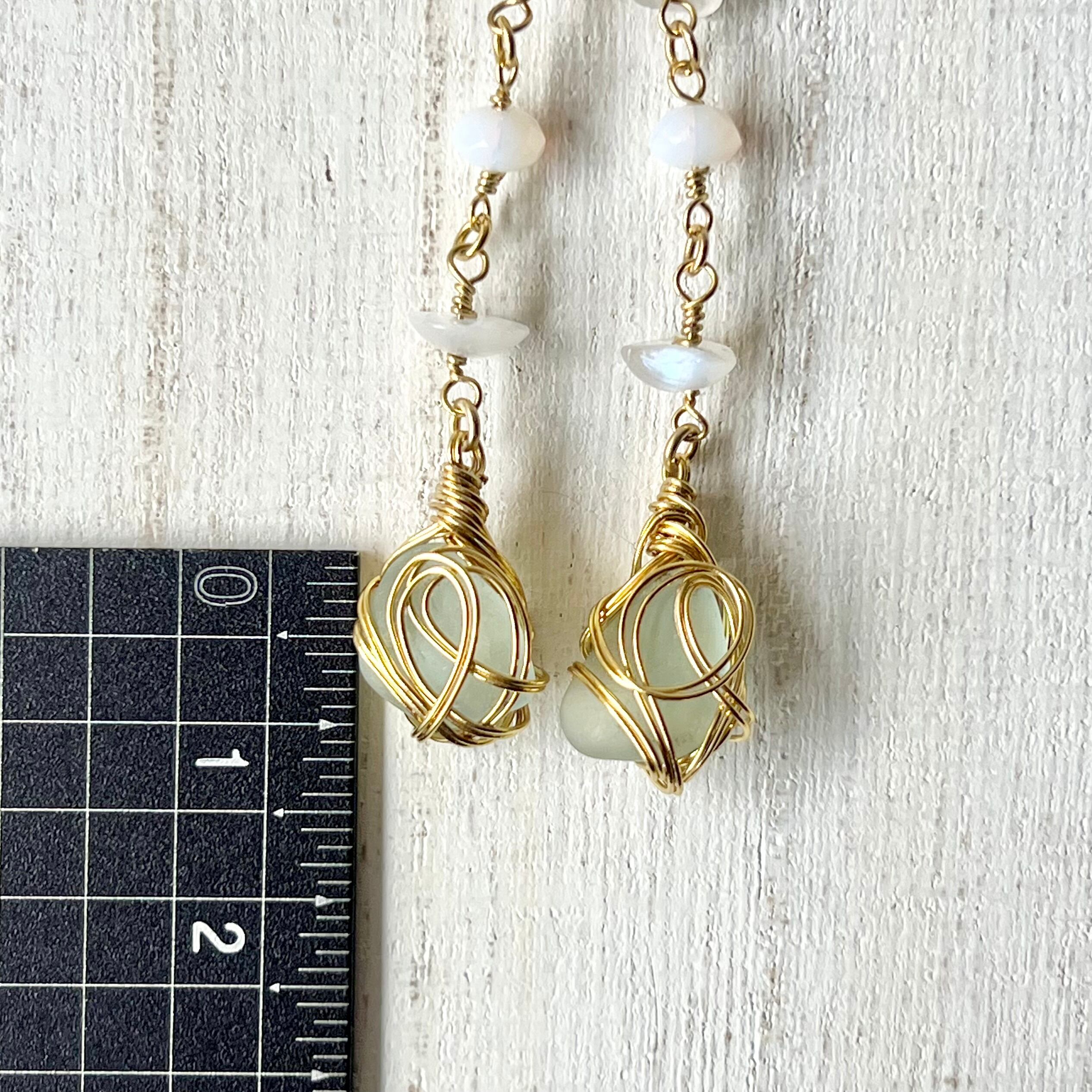 何歳になっても華やかに歩みたい大人のシーグラスとブルームーンストーンのロングピアス